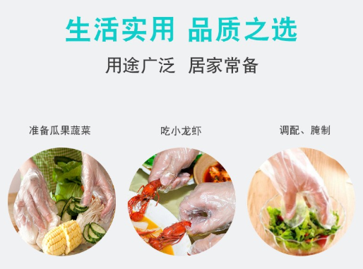 用途:一次性PE手套多用于家庭清潔,化學(xué)檢驗,機械園藝,食品、衛生及工農業(yè)防護,染發(fā),護理洗滌,用餐(如吃龍蝦,大骨頭)等等,佩戴可免去洗手之不便。
